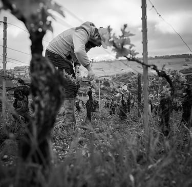 Les parcelles, situées entre 250 et 190 m d’altitude, bénéficient d’une exposition septentrionale (avec micro-climat), orientée sud à sud-ouest, sous l’influence d’un vent dominant de nord-est. Le vignoble est conduit en agriculture biologique et bio-dynamique, certifiée ECOCERT sas et Demeter, pour un rendement moyen de 45 hl/ha. La vendange est triée manuellement et entièrement égrappée, avant un pressurage lent et un débourbage sévère. La fermentation en levures indigènes et la fermentation malolactique spontanée précèdent un élevage sur lies fines en fûts de 1 à 4 vins pendant 15 à 19 mois, sans bâtonnage, avec très peu de SO₂, réajusté uniquement si nécessaire à la mise en bouteille.